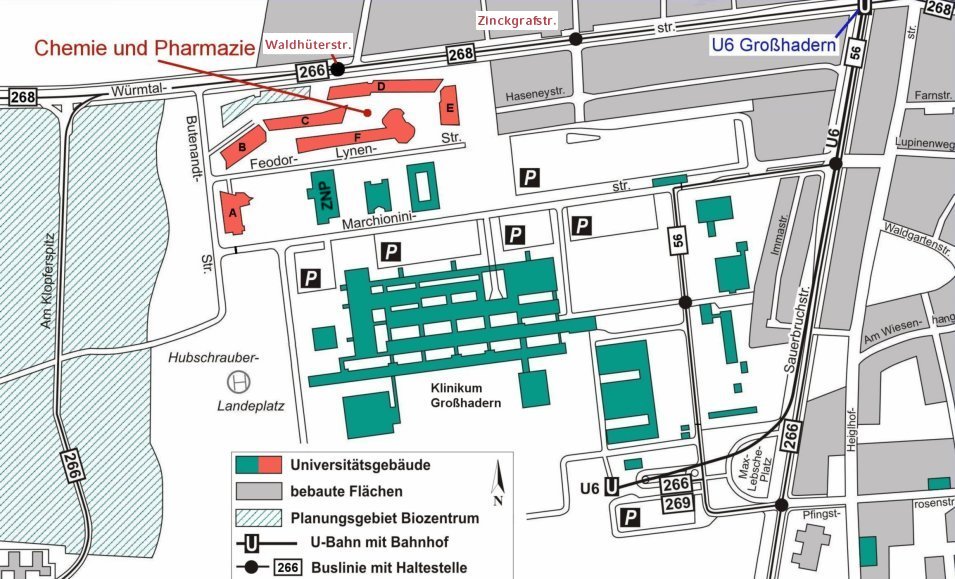 Mit der U-Bahn 6 in Richtung Klinikum Großhadern bis Haltestelle Großhadern erreichen Sie den Campus.